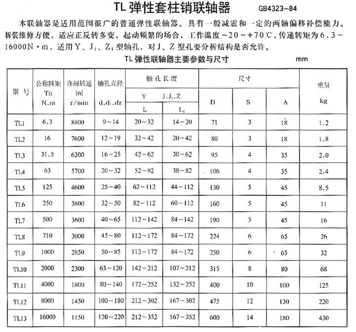 ●彈性套柱銷聯(lián)軸器是利用一端套有彈性套(橡膠材料)的柱銷,裝在兩半聯(lián)軸器凸緣孔中,以實(shí)現(xiàn)兩半聯(lián)軸器的聯(lián)接。彈性套柱銷聯(lián)軸器曾經(jīng)是我國應(yīng)用最廣泛的聯(lián)軸器,早在 20 世紀(jì) 50 年代末期即已制訂為機(jī)械部標(biāo)準(zhǔn), JB08 — 60 彈性圈柱銷聯(lián)軸器,是我國第一個部標(biāo)準(zhǔn)聯(lián)軸器。