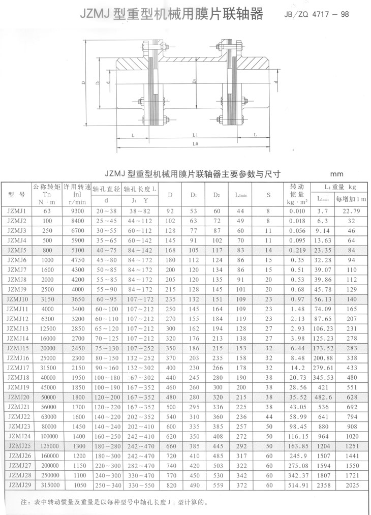●JZMJ型重型機(jī)械用膜片聯(lián)軸器具有機(jī)械強(qiáng)度高、承載能力大、質(zhì)量輕、結(jié)構(gòu)尺寸小,傳動(dòng)效率和傳動(dòng)精度高、可靠性好、裝拆方便,且具有無(wú)相對(duì)滑動(dòng),不需潤(rùn)滑,使用壽命長(zhǎng)、無(wú)噪聲、耐酸、堿、防腐蝕等特點(diǎn),可用于高溫、低溫和有油、有水和腐蝕介質(zhì)的工況環(huán)境。適用于中、高速、大轉(zhuǎn)矩軸系傳動(dòng)。以及各種機(jī)械裝置載荷變化不大的軸系傳動(dòng),通用性極強(qiáng)。