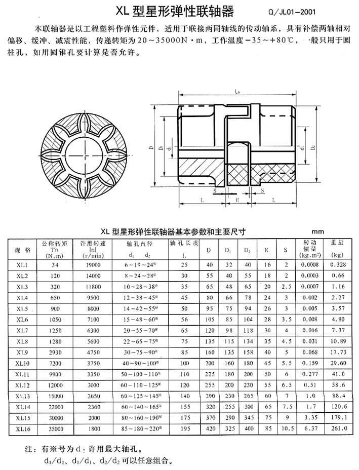 XL型星形彈性聯(lián)軸器的適用范圍和性能特點(diǎn)